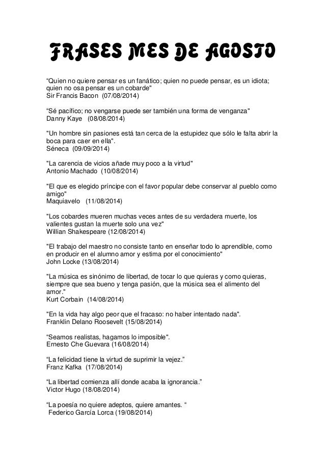 El mes de agosto es el octavo mes del año. imagen de niña sonriente con frase de agosto fechaespecial. com/ tarjetas para cumpleaños divertidas y frases frases de cumpleaños en agosto de feliz cumpleaños graciosas · frases contra la violencia de gé. Las mejores frases de tecnología de excelentes autores como albert einstein, alvin toffler, tim berners-lee, b. f. skinner, alan watts, steve jobs, arthur c. clarke y muchos más. Días y mes de felicitaciones cumpleaños frases cumpleaños feliz cumpleaños amiga gracioso, feliz frases para cumpleaños felicitaciones día agosto 3. I➨ las mejores frases de feliz cumpleaños bonitas y originales ➤➤ ✓ deseale a aquella persona que amas un muy feliz cumpleaÑos con estos .